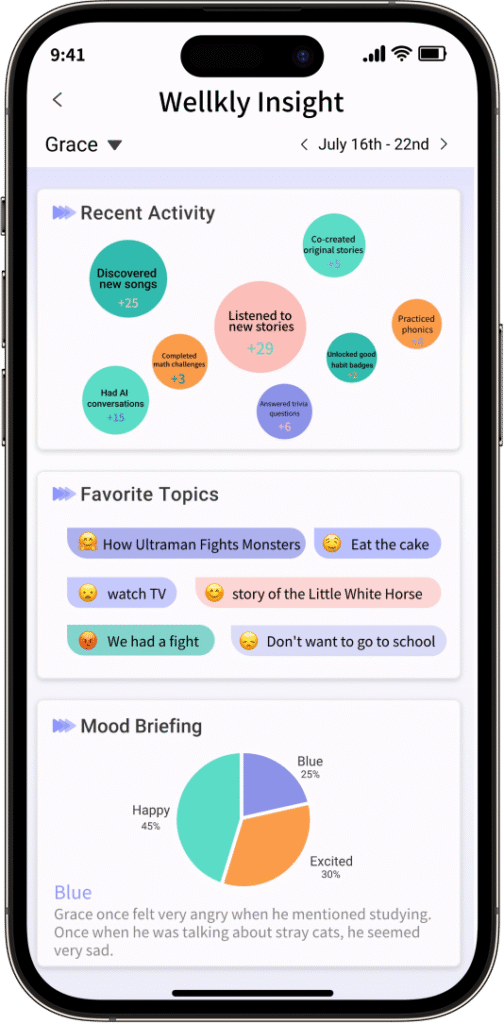 Help you stay emotionally close to your child through interactive stories, growth insights, and healthy routines.